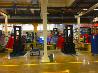 Etwa 20 % der Toyota-Kunden äußern individuelle Wünsche, die von einem anderen Scheinwerfersatz bis hin zu etwas Größerem wie einer verlängerten Staplergabel reichen. Um diese sehr unterschiedlichen Anforderungen erfüllen zu können, benötigt Toyota eine effiziente Methode, mit der die Mitarbeiter alles von den Komponenten bis zum Endprodukt sicher und ergonomisch montieren, demontieren und inspizieren können.